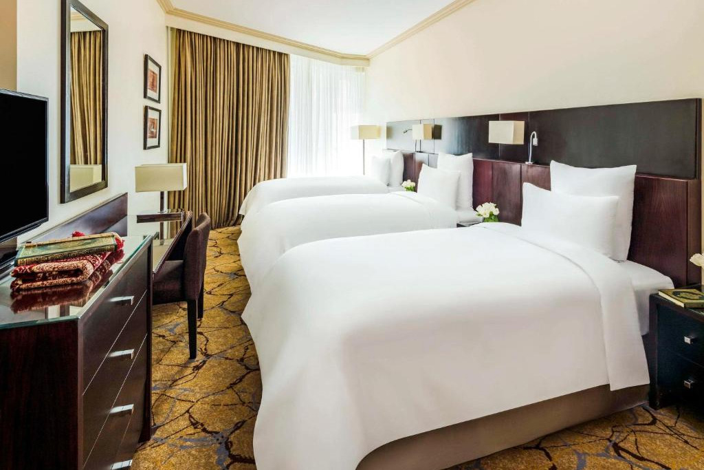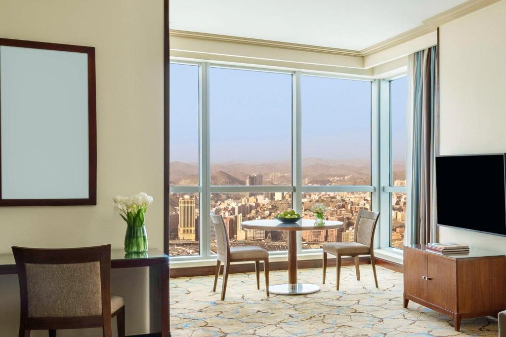 The 5-star Mövenpick Hotel & Residences Hajar Tower Makkah forms part of the prestigious Abraj Al Bait complex, featuring excellently appointed luxury hotel rooms and suites in the centre of Makkah. The 5-star hotel is located directly on the Haram Court, facing the King Abdul Aziz Gate.